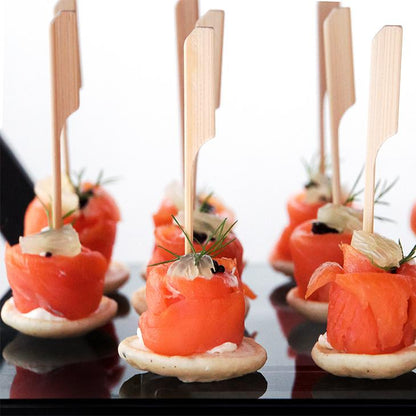- Decorative: Show off your tasty appetizers, lip-smacking sandwiches or delicious wraps using these biodegradable bamboo paddle picks.
